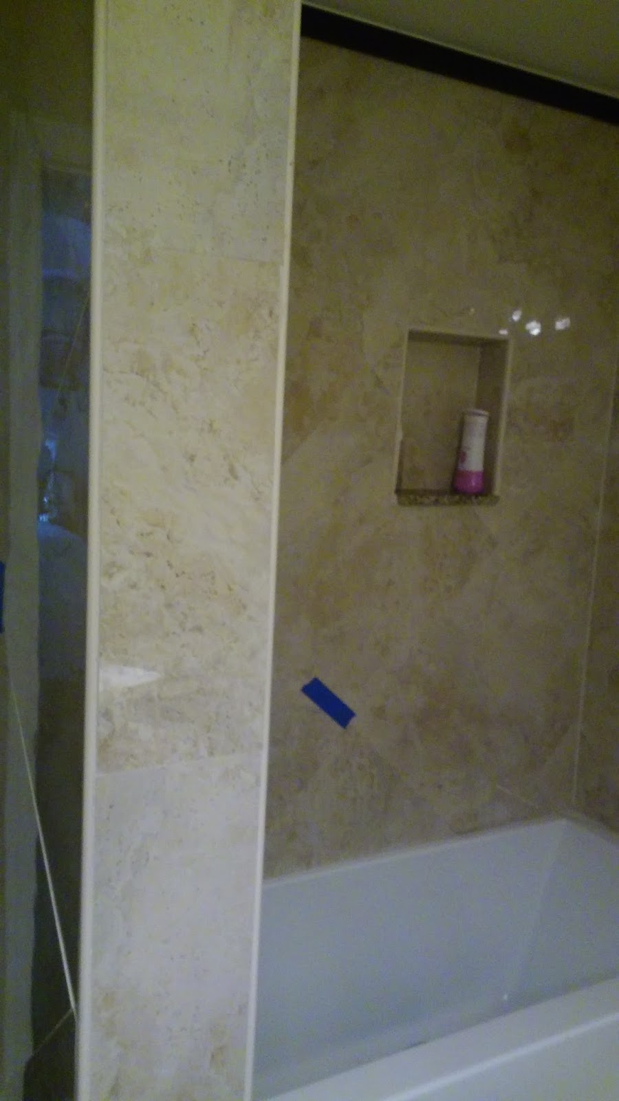 This customer contacted us to rectify a problem with their bathroom remodel. Their 24″ wall tile was moving and was afraid to use the bathroom. I informed them that the tile was installed with the wrong thinset and needed to be replaced. These are pics of what I found behind the tile. The tile did not stick to the thinset. We did not even need to use tools to remove the tile. We removed all the wall tile and replaced with new using a multibond thinset. Customer felt safe to use her shower and has since referred customers to do work for them.